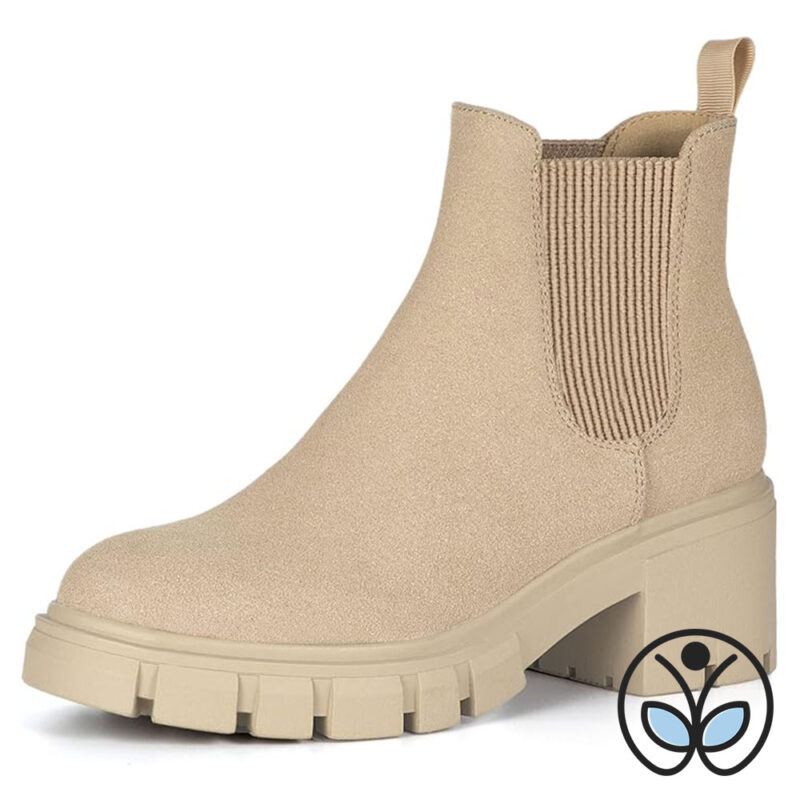 Women’s Suede Chelsea Booties with Lug Sole and Chunky Heel