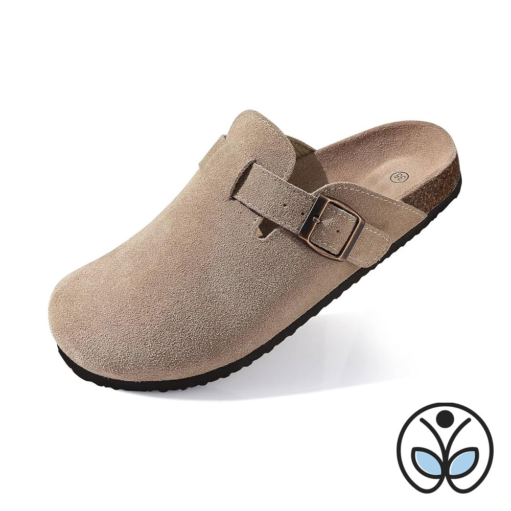 Women’s Genuine Suede Clogs – Cork Footbed Sandals with Arch Support, Leather Mules